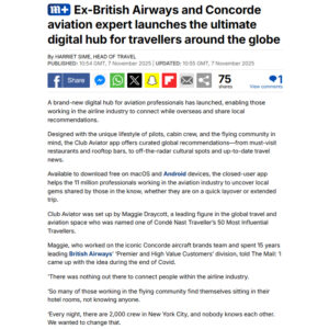 Club Aviator was set up by Maggie Draycott, a leading figure in the global travel and aviation space who was named one of Condé Nast Traveller’s 50 Most Influential Travellers.